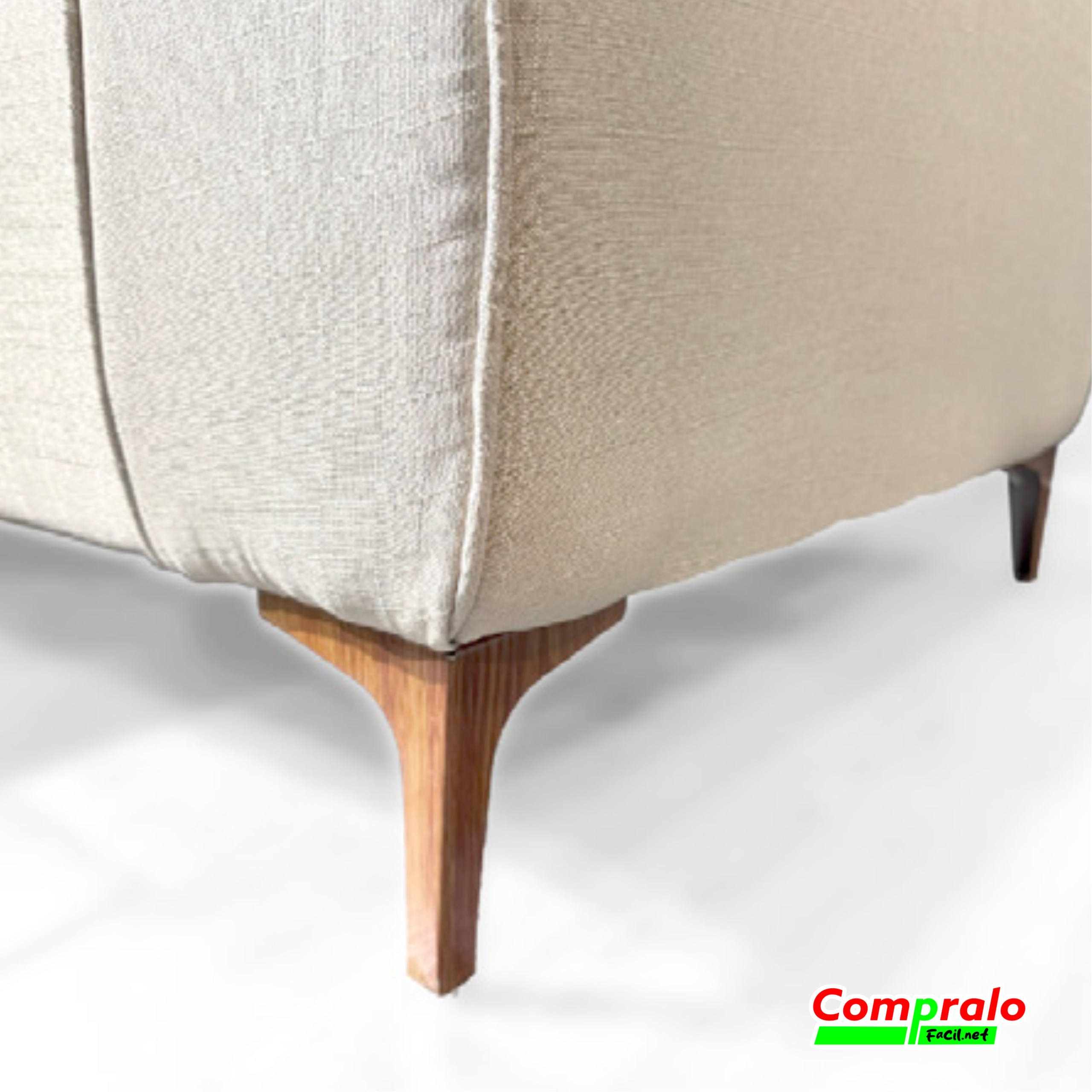 Su tapizado en tono beige claro aporta luminosidad y combina fácilmente con distintos estilos decorativos. Incluye chaise lounge para mayor comodidad, perfecto para relajarte o compartir en familia. Sus cojines decorativos en tonos suaves añaden un toque de estilo, mientras que las patas en madera elevan su apariencia con un acabado sofisticado.